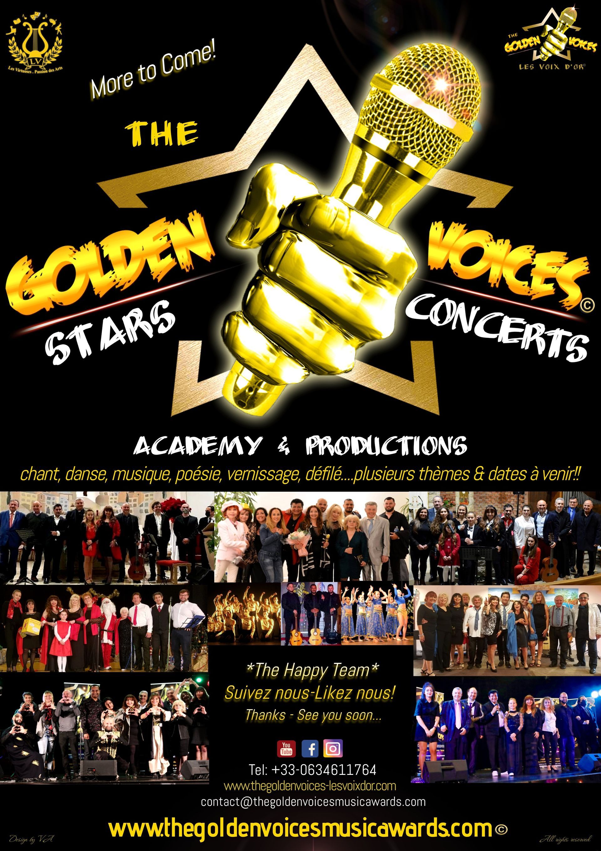 The president and founder of "The Golden Voices Music Awards" Mrs Vanina Aronica is also the vocal coach of the Golden Voices Academy, she offers a rare opportunity to benefit from her good advice, professionalism, international experience.